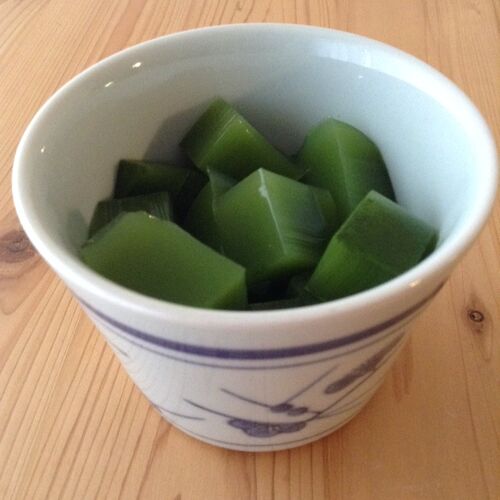 適当に(なんか抹茶っぽい?と)タイトルをつけてから、意味をよくわかっていないのに気づいて調べてみたら、「はんなり」は「京言葉で上品に明るく陽気なさま」だそうです。 はんなりって、明るく陽気なんだ……。 抹茶寒天……、上品かもしれませんが、明るく…